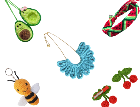 El yapımı, tığ işi 5 motifli mini çantamızla tarzınıza şıklık katın! Yumuşak ve dayanıklı makrome pamuklu ipten örülen bu çanta, telefon, cüzdan, anah..